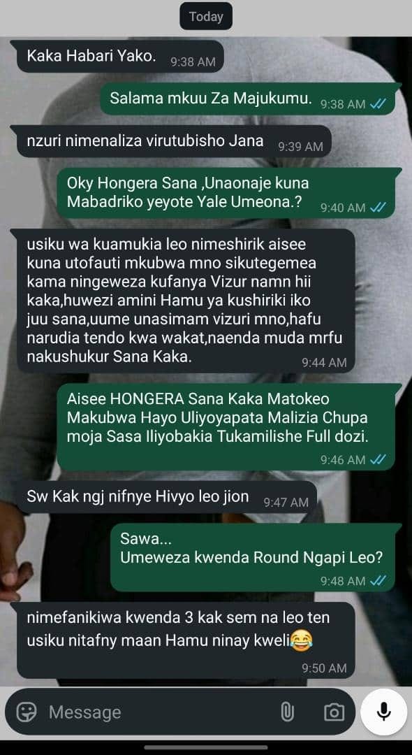 Hivyo nikachukua namba zake za simu na whatsapp bila kuchukua hatua yoyote ile ya ziada.